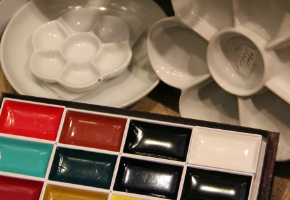 アクリル絵具(リキテックス、レンブラント)、アクリルガッシュ、 アクリル画筆