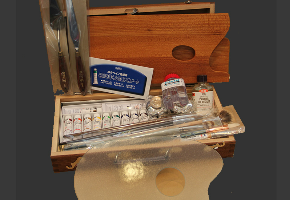 木箱に入った油絵セットです。旅行先など外出にもオススメです。